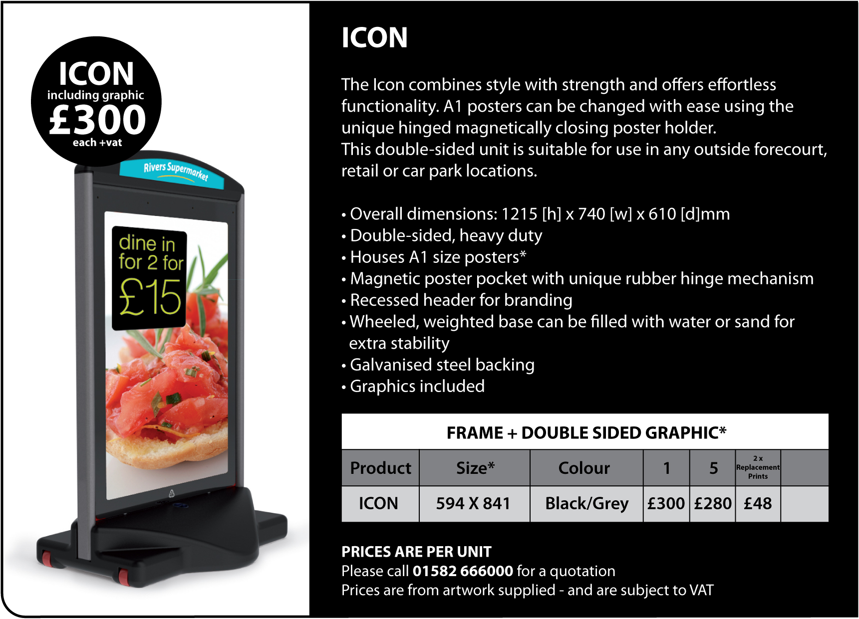 Whatever the weather, our range of pavement signs offers an imaginative way of displaying your banner, poster or graphic, rain or shine.